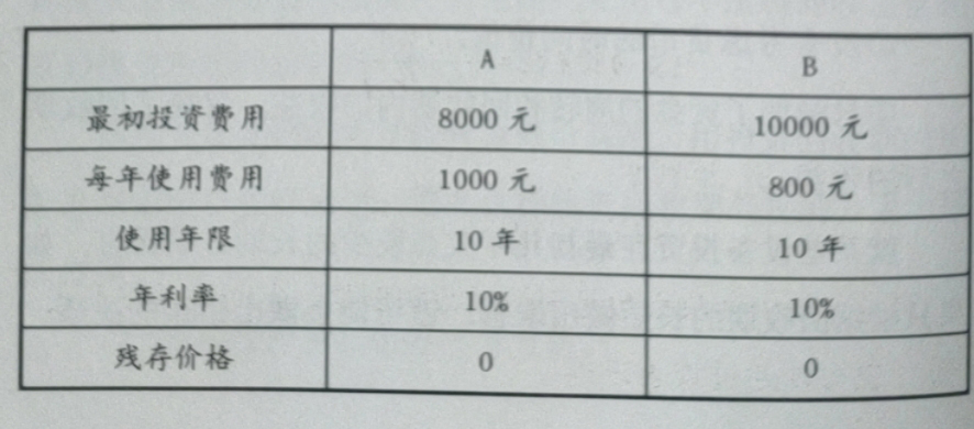 年平均總費(fèi)用=年使用費(fèi)用+(設(shè)備最初投資費(fèi)用×投資回收系數(shù))