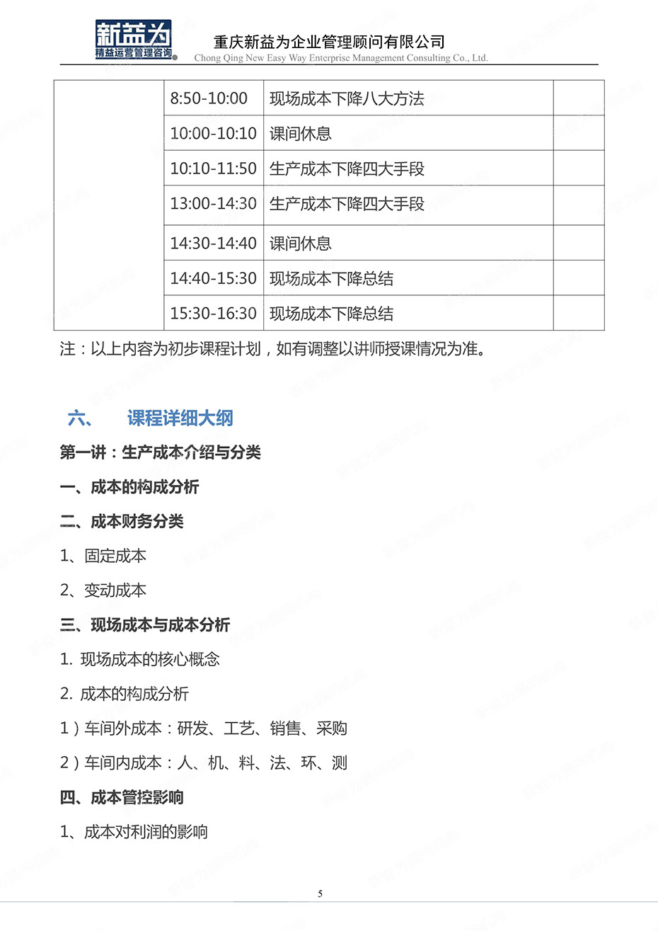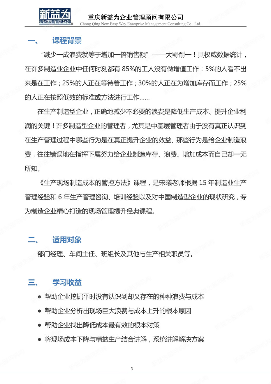 重慶2020.11 生產(chǎn)制造成本的分析與下降方法訓(xùn)練營(yíng)